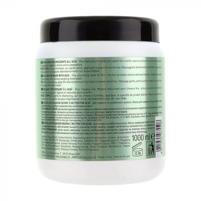 Маска для объёма с экстрактом асаи 1000млМаска для волос Brelil Numero Volume предназначена для использования на тонких и ослабленных волосах. Активная формула на основе экстракта Асаи глубоко питает ослабленные волосы, делает их шелковистыми, не обтягивая их.