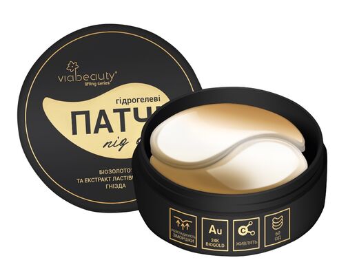 Гидрогелевые лифтинговые патчи под глаза з биозолотом та екстрактом ласточкиного гнезда.