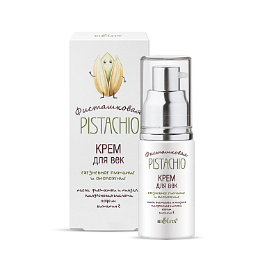 Крем для век "Ежедневное питание и омоложение" ФисташковаяКрем для век с фисташкой деликатно ухаживает за тонкой и чувствительной кожей вокруг глаз, устраняя следы усталости и сухость. Формула с маслом фисташки и активными компонентами делает белорусская косметика белита эффективным средством для ежедневного ухода. Продукт bielita увлажняет, разглаживает мелкие морщины и повышает эластичность кожи. Крем белита быстро впитывается, не оставляя липкости и жирного блеска. Регулярное применение продукции belita помогает сохранить свежий, сияющий и отдохнувший взгляд. Объем: 30 мл.