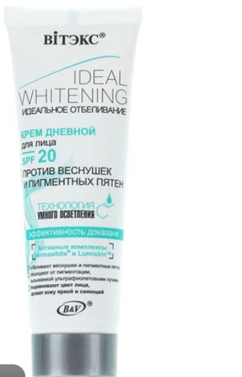 Крем дневной для лица против веснушек и пигментных пятен (SPF 20)Крем дневной для лица vitex — витэкс идеальное отбеливание эффективно выравнивает тон кожи, осветляет пигментные пятна и придаёт лицу ровный, сияющий вид. Современная формула с ниацинамидом, витамином С и экстрактом толокнянки направленно борется с гиперпигментацией, постакне и тусклым цветом кожи. Средство обеспечивает надёжную защиту от появления новых пигментных зон и подходит для ежедневного применения. Уход разработан специалистами витекс косметика с учётом особенностей кожи, склонной к неровному тону. Продукт входит в отбеливающую серию витэкс, которая сочетает мягкое действие и высокую эффективность. Объём 50 мл.