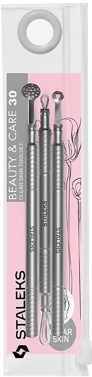 Набор косметологический «Чистая кожа» BEAUTY & CARE 30 (Уно, шумовка на 19 отверстий и петля двусторонняя)Набор косметологических инструментов «Чистая кожа» STALEKS Beauty & Care 30 (артикул ZBC-30) предназначен для эффективной и безопасной механической чистки кожи лица в домашних условиях.