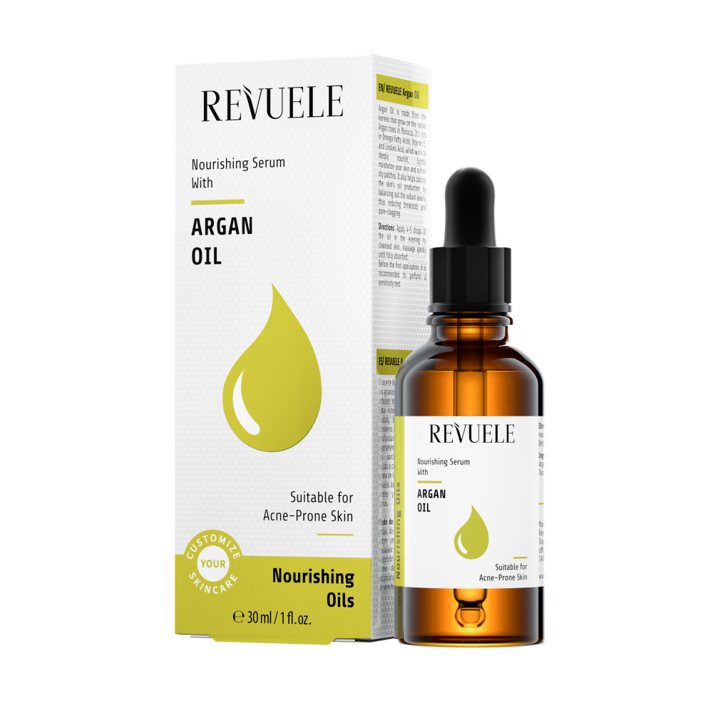 REVUELE Аргановое масло Объем: 30 млАргановое масло производится из ядер, которые растут на местных деревьях Аргана в Марокко. Оно богато жирными кислотами Омега, витамином Е и линолевой кислотой, которые глубоко питают, слегка увлажняют кожу и смягчают сухие участки. Оно также помогает контролировать выработку кожного жира, уравновешивая уровень кожного сала, тем самым уменьшая высыпания и закупорку пор.