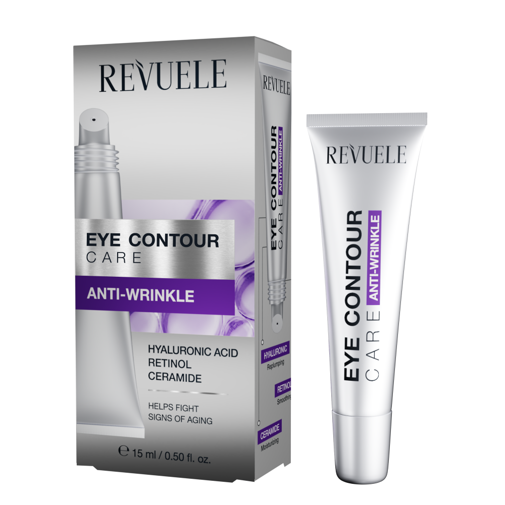 REVUELE УХОД ЗА КОНТУРОМ ГЛАЗ ПРОТИВ МОРЩИН Объем: 15 мл.REVUELE EYE CONTOUR CARE ANTI-WRINKLE. Передовое решение, которое поможет бороться с морщинами для придания коже контура глаз антивозрастного вида. Эффективная формула с гиалуроновой кислотой усиливает увлажнение и упругость, омолаживая нежную кожу вокруг глаз. Инфузия ретинола помогает разгладить морщины, уменьшая их появление для более молодого вида, в то время как керамиды восстанавливают водный барьер кожи, оставляя кожу напитанной и защищенной.