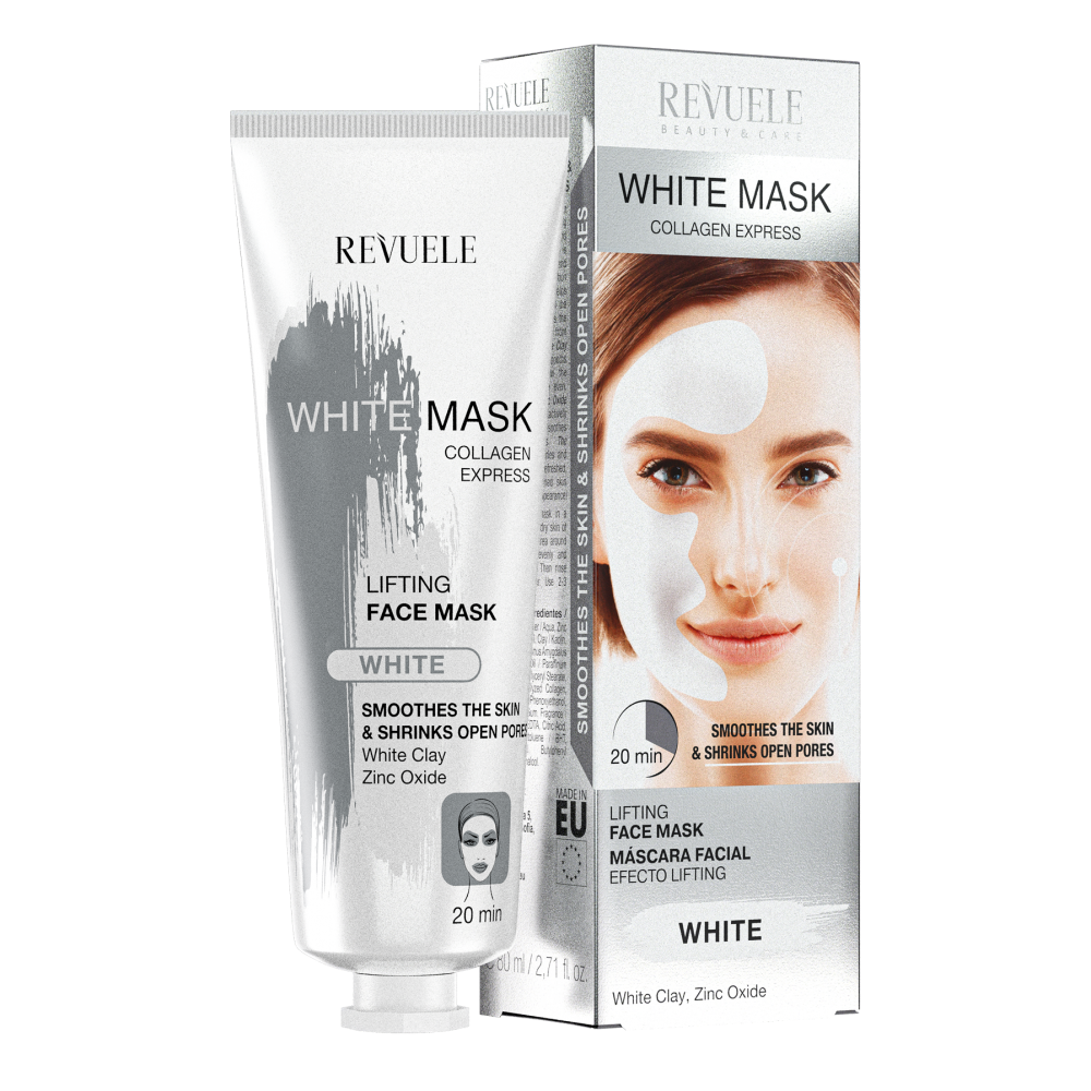 REVUELE WHITE MASK Коллаген Экспресс Объем: 80 млПодарить коже молодость и красоту с помощью лифтинг-маски очень просто! Это лифтинговое и максимально увлажняющее средство на основе коллагена, эластина и белой глины. Глубокое проникновение в слои дермы способствует повышению эластичности и прочности кожи, восстанавливает водный баланс, препятствует преждевременному старению. Белая глина прекрасно питает и разглаживает кожу, помогает сузить поры, добиться ровного, матового цвета лица. Оксид цинка регенерирует клетки, активно обновляет кожу, подсушивает и успокаивает проблемные участки. Аллантоин смягчает кожу и нормализует выработку кожного сала. Освеженная, нежная и ухоженная кожа действительно преобразит ваш внешний вид!