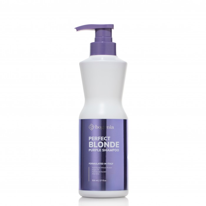 Шампунь с фиолетовыми пигментами для устранения нежелательных желтых оттенков блондаБогения (bogenia) шампунь для волос perfect blonde shampoo bogenia BG418 №001 — это фиолетовый шампунь, нейтрализующий нежелательную желтизну на светлых, мелированных и седых волосах. Фиолетовые пигменты придают блонду прохладный оттенок, аргановое масло увлажняет и питает, а протеины шёлка восстанавливают структуру, придавая поверхности гладкость и блеск. Без сульфатов и парабенов — подходит для регулярного ухода, сохраняет цвет между походами к колористу — косметика богения. Объём: 500 мл.