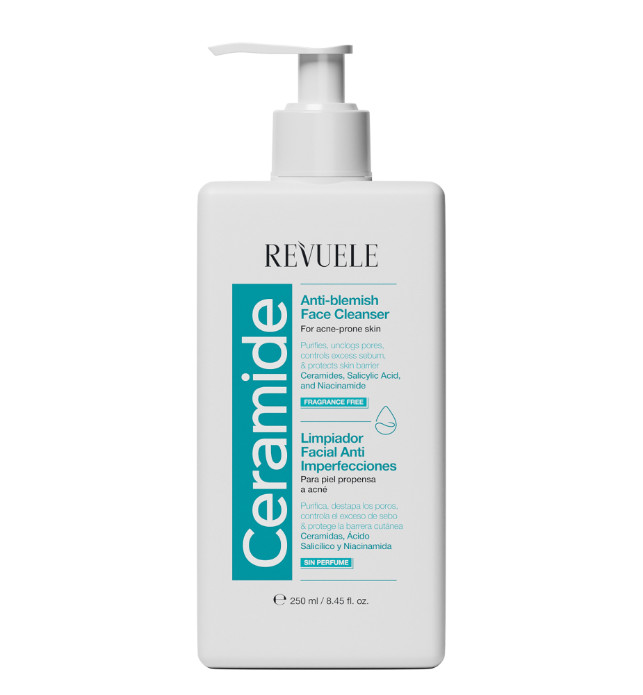 Средство против пятен и пигментации Объем: 250 млREVUELE CERAMIDE ANTI-BLEMISH FACE CLEANSER — это нежное ежедневное средство для умывания лица. Усовершенствованная формула с салициловой кислотой эффективно удаляет загрязнения и избыток кожного сала, очищает поры, делая кожу гладкой. Ниацинамид помогает уменьшить появление несовершенств и черных точек в будущем, а керамиды защищают естественный кожный барьер.
