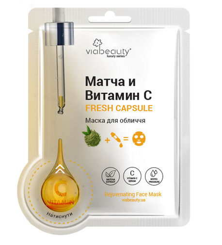 Маска для лица тканевая Матча и витамин СТканевая маска для лица с капсулой-активатором