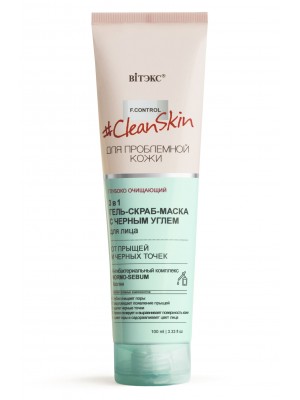 3 в 1 Гель-Скраб-Маска для лица от прыщей и черных точек с черным углёмVitex (витэкс) clean skin — это гель-скраб-маска для лица от прыщей с комплексным действием. Она глубоко очищает поры, удаляет ороговевшие клетки и уменьшает воспаления. В основе формулы используется белорусская косметика с салициловой кислотой, абразивными частицами и растительными экстрактами, которые регулируют выработку себума. Средство матирует, освежает и помогает бороться с акне. Подходит для жирной и проблемной кожи. Объём: 100 мл.
